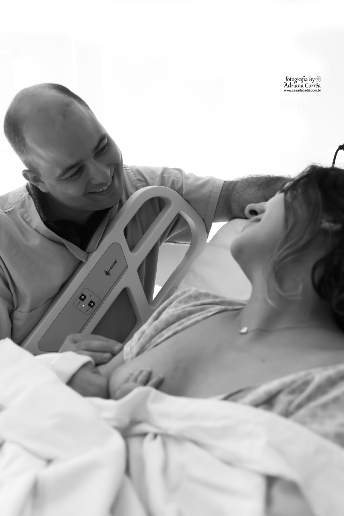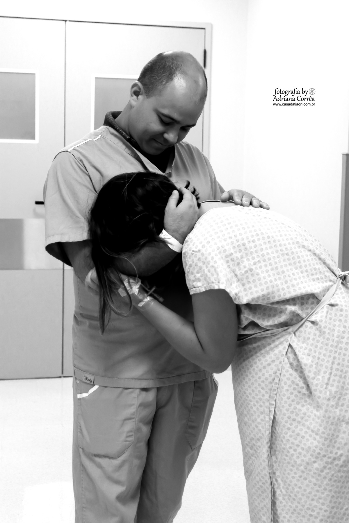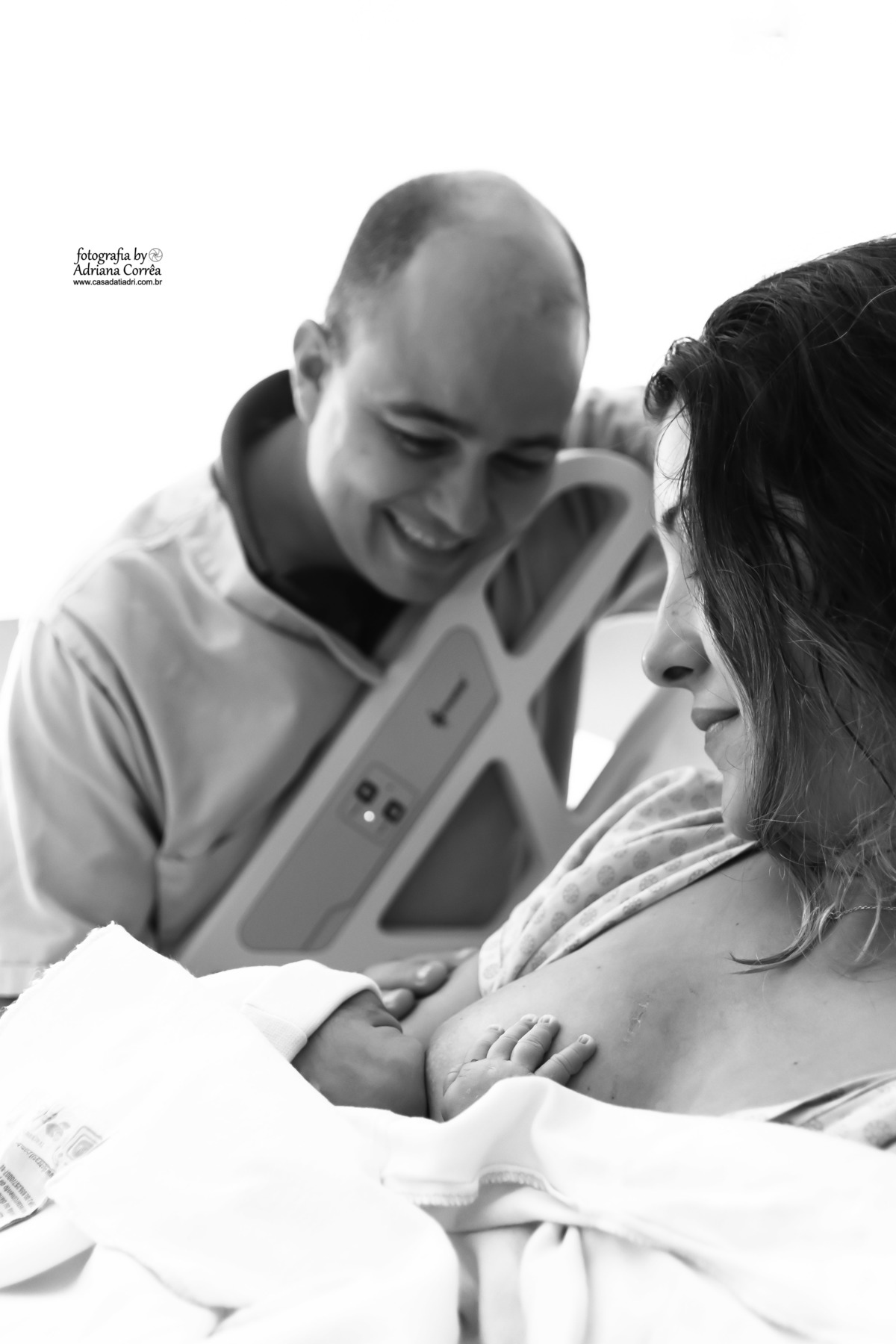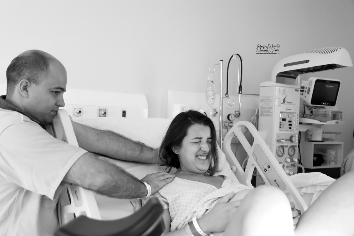 Trabalho de parto não é fácil para a mulher que está com dor, não é fácil para o pai, para a família mas a força vem daí também! Para a mulher é fundamental sentir que não está sozinha e neste parto, vi um pai emocionado mas, forte, segurando firme a mão de sua esposa e enchedo-a de coragem para parir lindamente o fruto do amor deles!